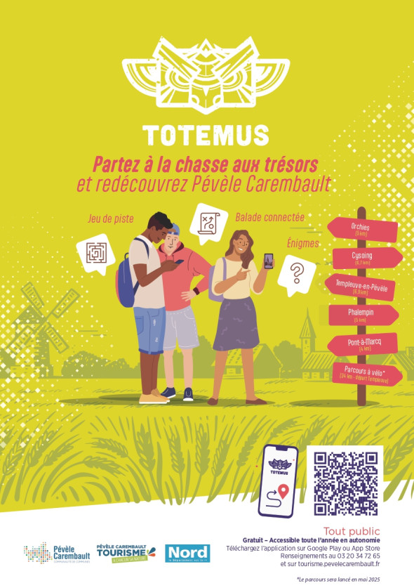 Etes-vous prêts à vivre une nouvelle aventure en Pévèle Carembault ? Depuis 2023, Pévèle Carembault Tourisme vous propose de découvrir autrement le territoire grâce à une expérience ludique et connectée avec l'application Totemus® : une chasse aux trésors interactive qui vous plonge au cœur de la commune… et c’est entièrement gratuit !