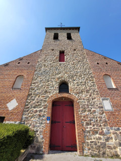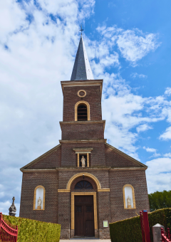 L’édifice actuel est la troisième version d’un plan de 1825. L’architecte Étienne Voisin reconstruit l’église sur un nouvel axe, orientant le porche vers la rue de la Grand-Place et remplaçant l’ancien édifice et son cimetière. La tranquillité est de courte durée : en 1914, un incendie ne laisse subsister que les murs extérieurs et la flèche. La reconstruction de 1922, confiée à l’architecte Jean Goniaux, respecte le plan du XIXᵉ siècle mais adopte des charpentes métalliques. Malheureusement, la Seconde Guerre mondiale apporte son lot de destructions et l’église doit encore être restaurée et inauguré en 1957.