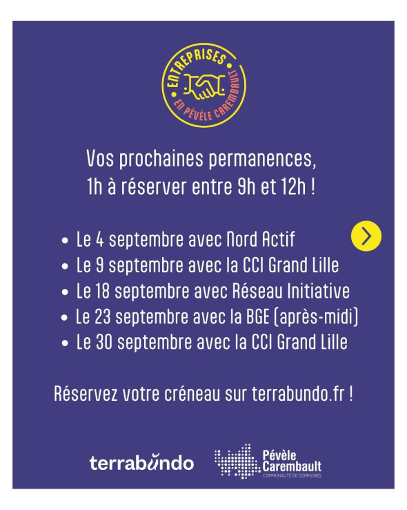 Par ailleurs, l’équipe du Service aux Entreprises de Pévèle Carembault est disponible pour vous épauler sur ces sujets, mais aussi sur vos problématiques de recrutement ou d’implantation sur le territoire.