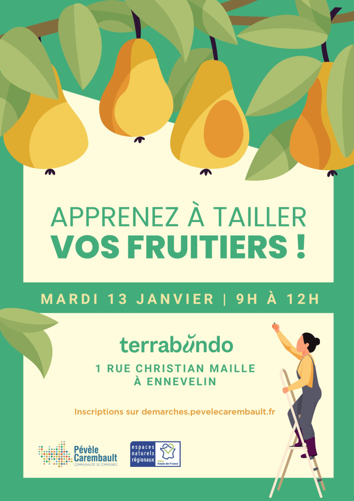 L’hiver est bien installé. Est-ce encore la bonne période pour tailler ses arbres… ? La réponse est OUI ! Pour avoir la bonne technique, Pévèle Carembault vous propose de participer à un atelier de tailles des fruitiers hautes-tiges et de petits fruitiers le mardi 13 janvier de 9h à 12h dans le verger de Terrabùndo, 1 rue Christian Maille à Ennevelin.