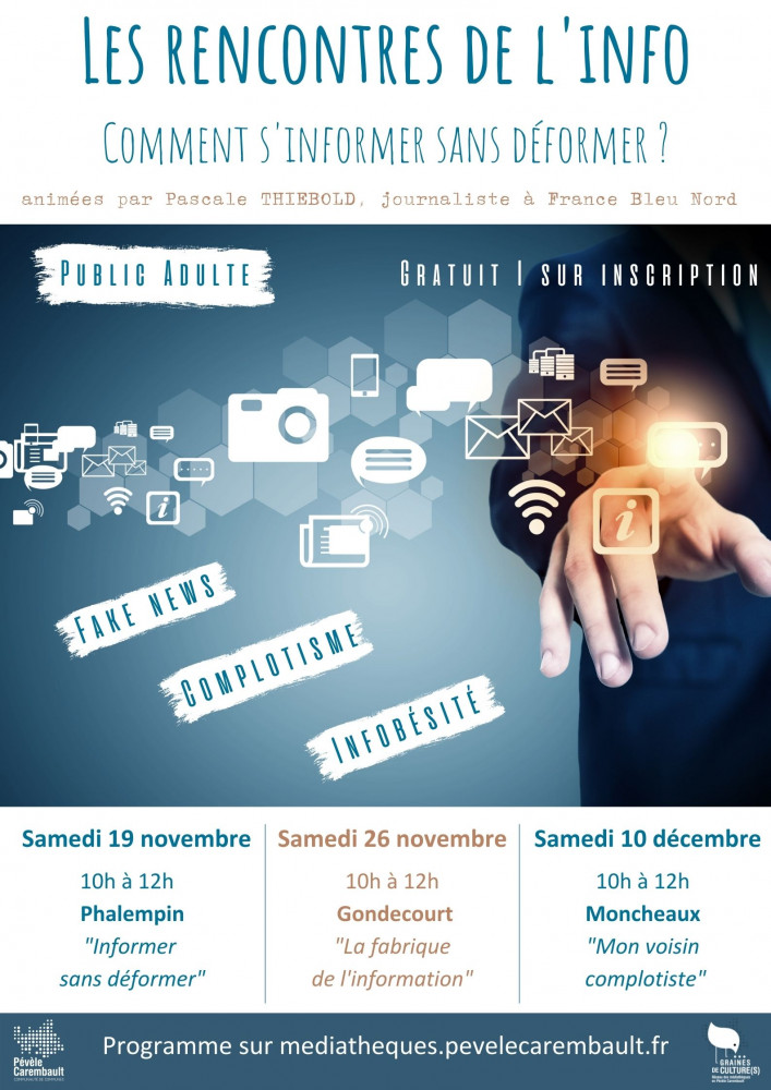 Adultes /Vous entendez sa voix depuis votre poste de radio. Elle vous accompagne sur la route et vous informe sur France Bleu Nord. La journaliste Pascale Thiebold vous propose 1 matinée de rencontre et d’échanges sur la thématique : « Il n’y a pas de hasard : mon voisin complotiste ».