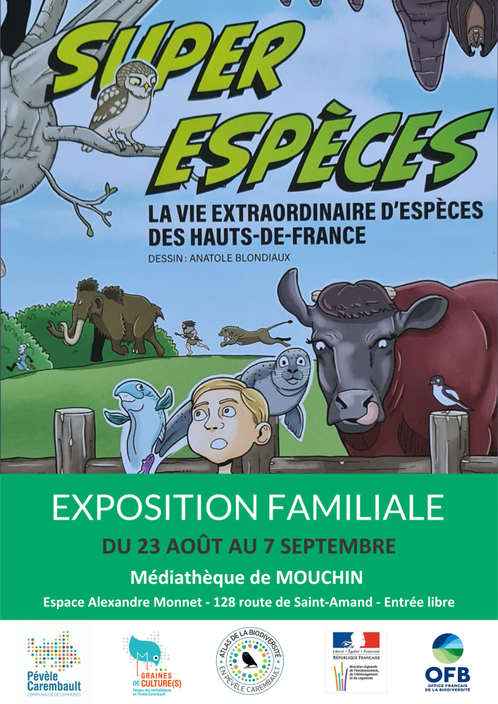 Du 23 août au 7 septembre, l’exposition Super Espèces, la vie extraordinaire d’espèces des Hauts-de-France sera installée dans la médiathèque de Mouchin.