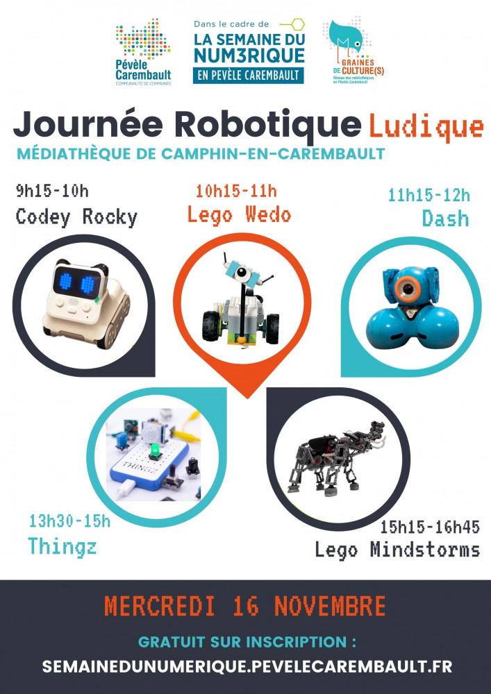 Réservez un créneau pour votre enfant/ado le mercredi 16 novembre ! Pévèle Carembault lui propose de s'initier à la robotique et à la programmation lors d'ateliers les Clubs P’tits Génies et Jeunes Talents du numérique.