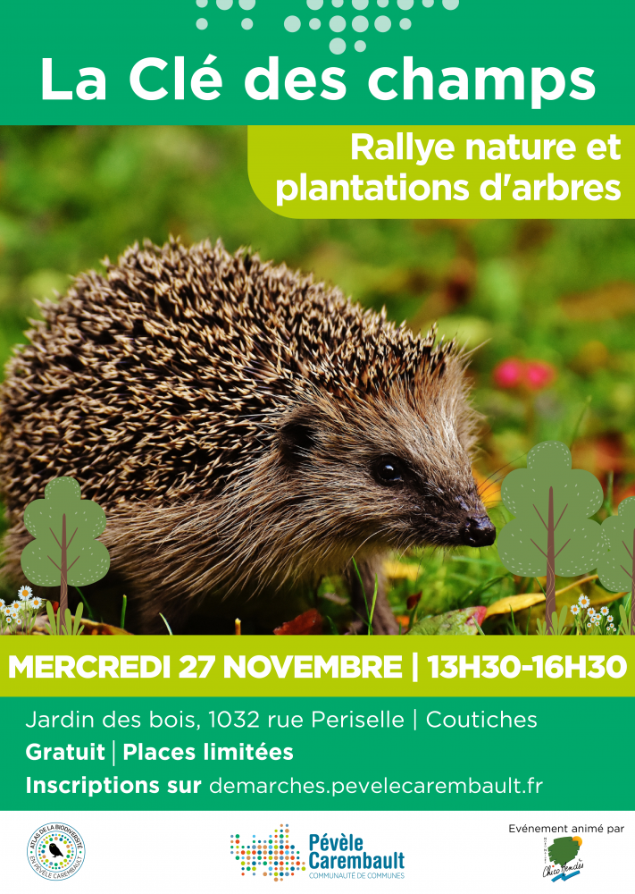 Pévèle Carembault vous propose une nouvelle animation en lien avec "l'Atlas de la Biodiversité" le mercredi 27 novembre au Jardin des Bois à Coutiches avec un rallye nature et des plantations.